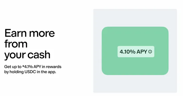Base App 此次更新推出 Base Pay,支援使用者使用 USDC 進行幾乎即時的低成本支付,目前 Base 已與電商巨頭 Shopify 進行合作,未來將支援全球數百萬商家的 USDC 支付服務。此外,使用者僅需持有 USDC 即可享受高達 4.1% 的 APY(年化收益率)。