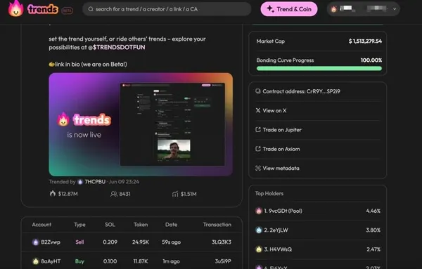 Solana 新 SocialFi 項目 Trends.fun 初探