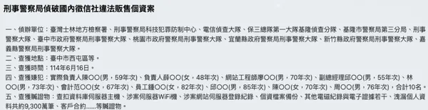 刑事警察局上週五(7/18)揭露,知名連鎖徵信業者「國華徵信社」台中分公司爆發重大個資洩漏案。