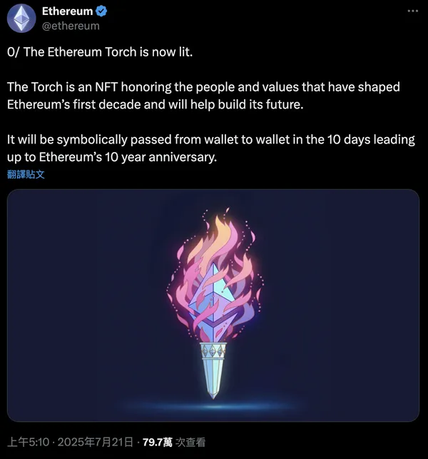 以太坊基金會啟動火炬 NFT 慶祝活動