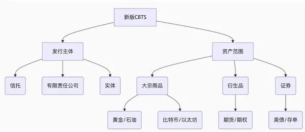 此次修訂全面升級了CBTS的定義,突破了原來單一商品的限制。新規明確信託份額可由信托、有限責任公司或其他類似實體發行,靈活性大幅提升。資產範圍也被允許持有多种商品(比如黃金、石油、比特幣、以太坊等)、商品基礎資產(包括期貨、選擇權、交換等)、證券、現金及約當現金(如美國政府債券、存單)。