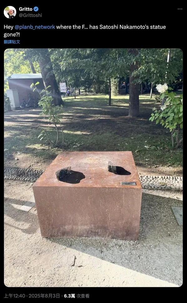 位於瑞士盧加諾市 Villa Ciani 公園的中本聰雕像於 8 月 2 日驚傳失竊,這座由義大利藝術家 Valentina Picozzi 設計的「消失雕像」自 2024 年 10 月揭幕以來,一直是比特幣社群的重要象徵。
