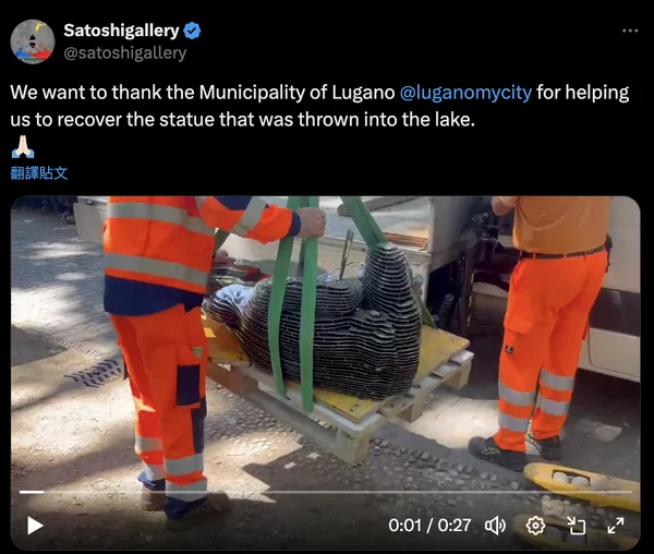 這座雕像原本是 Plan B 論壇期間由盧加諾市和穩定幣發行商 Tether 共同揭幕,代表該市致力於成為全球比特幣中心的決心。