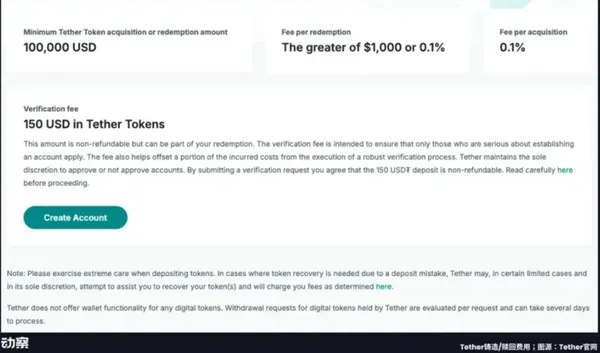 相反,Tether 對每筆鑄造與贖回均徵收 0.1% 的手續費,且贖回最低門檻高達 10 萬美元,額外還需支付 150 USDT 的驗證費。