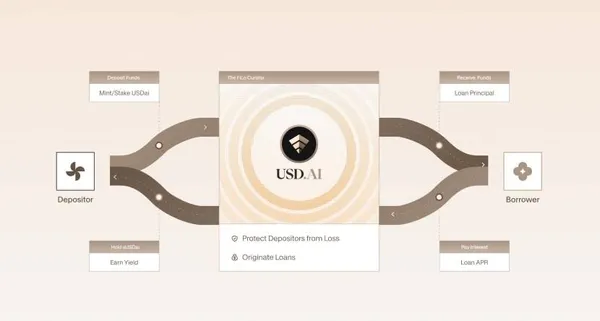 USD.AI的運作原理始於用戶以USDT或USDC等穩定幣作為抵押品,按1:1比例鑄造USDai穩定幣。USDai由美國國債和主流穩定幣支持以達到錨定美元價格並具有即時贖回能力和一定的流動性,適合DeFi生態中的交易或提供流動性,同時用戶可以進一步選擇質押USDai獲取sUSDai代幣,再參與其他DeFi專案獲取額外收益,達到「一魚多吃」的效果。