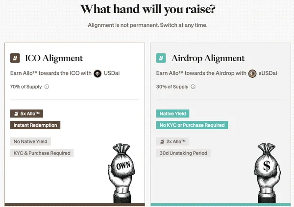 Allo積分活動將會在YPO(累積已支付收益)達到2,000萬美元時結束。選擇ICO配額的用戶需要透過KYC,而選擇空投的用戶則無需過KYC。