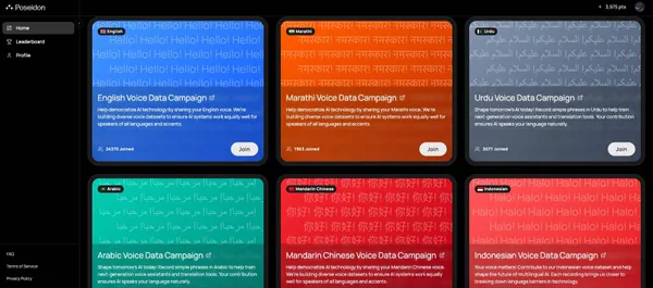 Poseidon 的解決方案正是針對這一資料需求痛點,透過鼓勵使用者貢獻真實情境下的多語種語音資料,為 AI 模型提供更豐富、更高品質的訓練素材。
