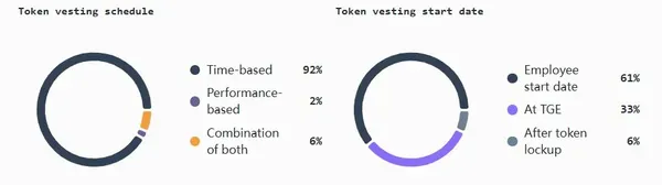 在歸屬方面,大多數團隊遵循四年期計劃,並設置一年的「懸崖期」,但也有一些團隊嘗試了混合模式,將基於時間與里程碑驅動的解鎖相結合。