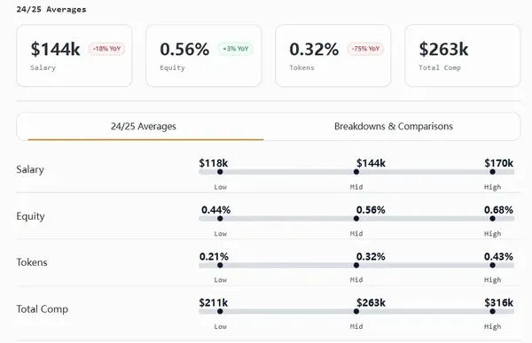 整體而言,2024年和2025年初的加密行業薪酬處於下行市場,與傳統行業相比,其薪酬體系仍相對不成熟。