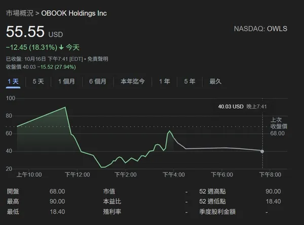 台灣奧丁丁集團(OwlTing Group)的母公司OBOOK(股票代碼:OWLS),已於美國時間10月16日在那斯達克掛牌上市,成亞洲首家以「直接掛牌」方式上市的金融科技公司。