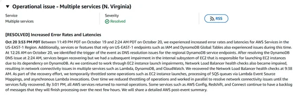 根據AWS發布的最新情況說明,當機主要是因為維吉尼亞北部(US-EAST-1)資料中心的DynamoDB資料庫服務出現DNS解析問題,並引發連鎖效應,目前該問題已經修復。