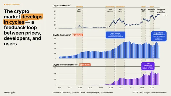 過去三年,加密行業開發者頂住市場大幅回調與監管不確定性的雙重壓力,持續推進基礎設施升級與技術突破。這些努力讓我們迎來了今天:加密貨幣已成為現代經濟中不可忽視的重要組成部分。