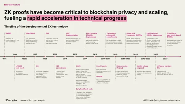 零知識(ZK)和簡潔證明系統也正在迅速從數十年前的學術研究演變為關鍵基礎設施。零知識系統現已集成到Rollup、合規工具甚至主流Web服務中,Google新的ZK身份系統就是一個例子。