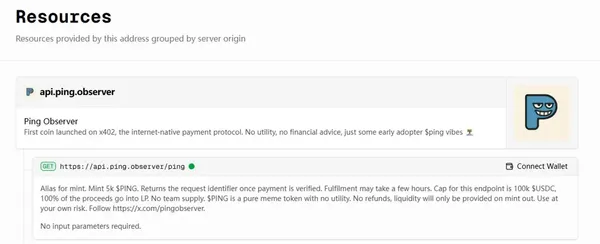 而工作流程也解釋了為什麼$PING的鑄造過程會像銘文,因為它需要經過x402驗證器的確認。在鑄造過程中,大量的鑄造請求不僅把鑄造介面一次又一次地癱瘓,也是第一次給x402協議來了場實打實的壓力測試。