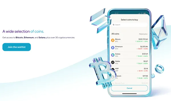 美國最大線上銀行SoFi Technologies(NASDAQ:SOFI)宣佈正式推出「SoFi Crypto」,成為全美首家持有全國銀行牌照並提供加密交易服務的銀行。此舉象徵著傳統金融與加密世界的正式融合。SoFi使用者現可直接於其FDIC保險的支票與儲蓄帳戶中,購買、出售與持有比特幣($BTC)、以太幣($ETH)與Solana,未來將陸續開放更多資產。