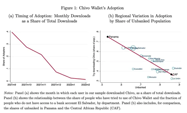 - Chivo Wallet使用率:根據美國國家經濟研究局(NBER)團隊的研究指出,多數人領完獎勵便不再使用Chivo,僅約20%使用者持續活躍。