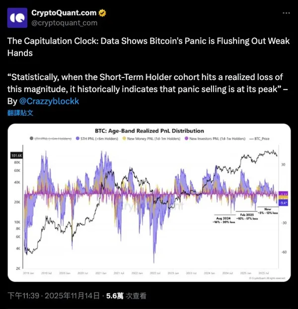 不過,CryptoQuant分析師Crazzy Blockk認為,現在就稱其為熊市還為時過早。他解釋,短期持有者(新進場資金)的虧損尚未達到20%至40%的全面投降階段水準,因此這次下跌更像是週期中期調整,而非熊市的開始。