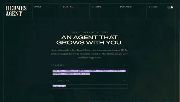 Hermes Agent 是開源自學習 AI 代理框架,一行指令安裝、支援 200 多種模型切換,讓你的 AI 助理越用越聰明。