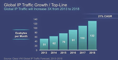 思科視覺網路指標預測:到2018年數據流量成長將高於20%