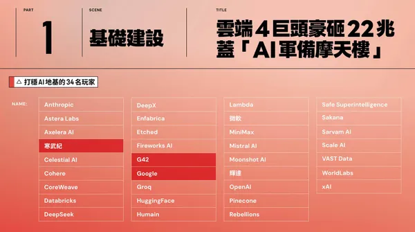 7000億美元、770家企業、34名玩家,一張圖看懂2026年全球AI基礎建設版圖
