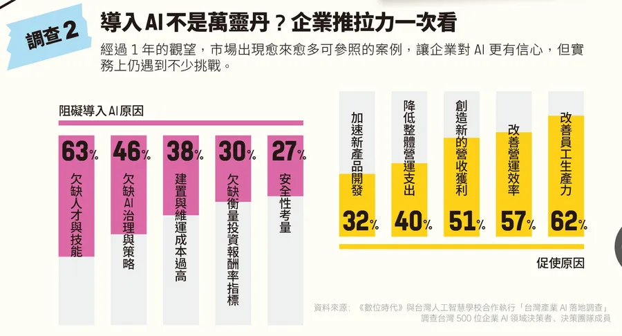 企業瘋導入生成式AI,卻有3成沒頭緒,《數位時代》與台灣人工智慧學校發表《台灣產業AI落地調查局》,盤點50+解方精準止痛!